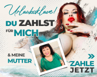 Du wirst kräftig zur Kasse gebeten! Mein nächster Wellnessurlaub steht an. Deine Pflicht als mein braver Diener ist es, einen Betrag Deiner Wahl beizusteuern! Ich werde meinen Urlaub - zusammen mit meiner Mutter und meinem großschwänzigen Alphabullen - selbst [zum Artikel]