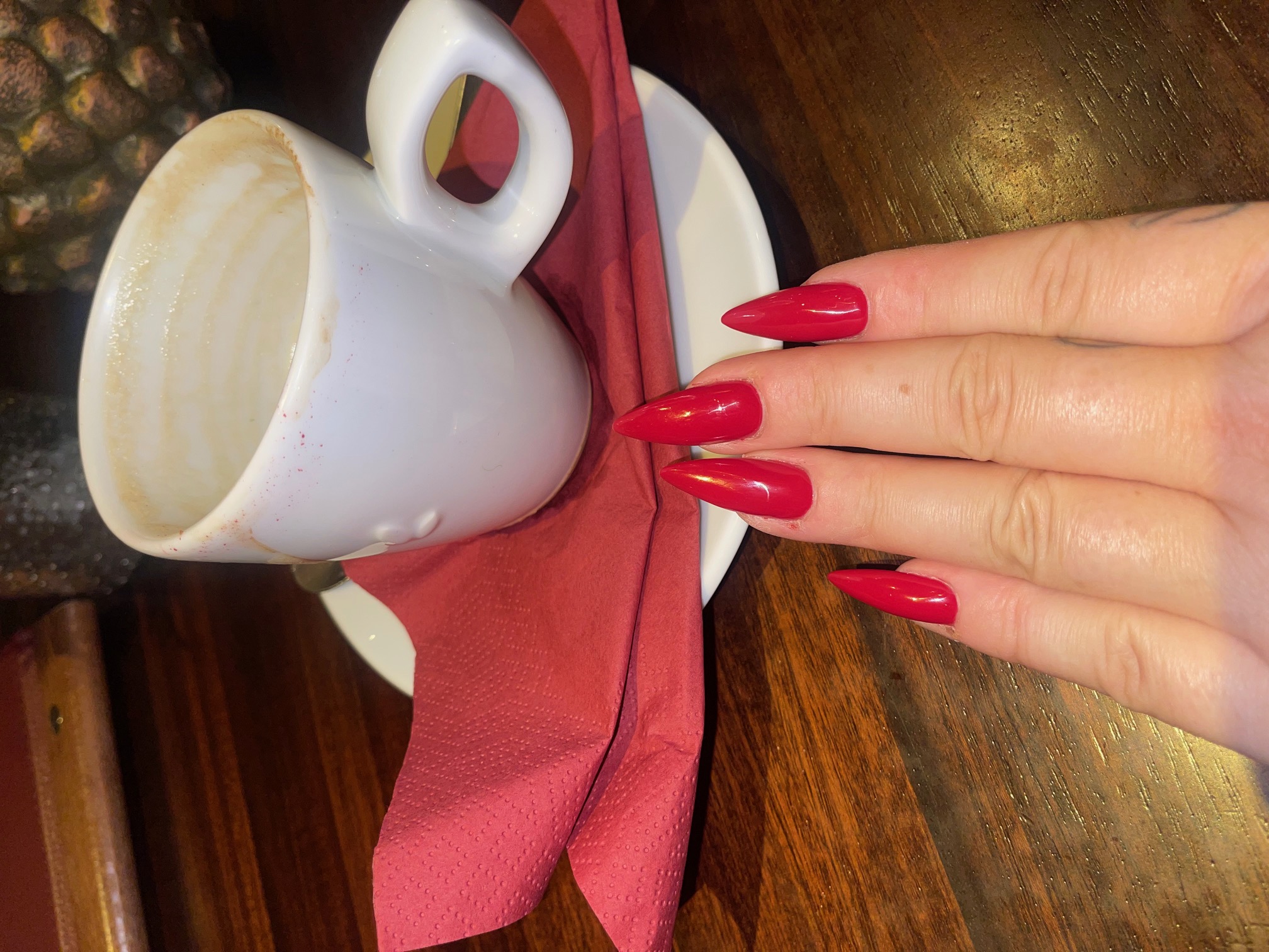 Nagelstudio, rote lange Krallen 65 Euro 04.11.2025 JacquelineJanett
