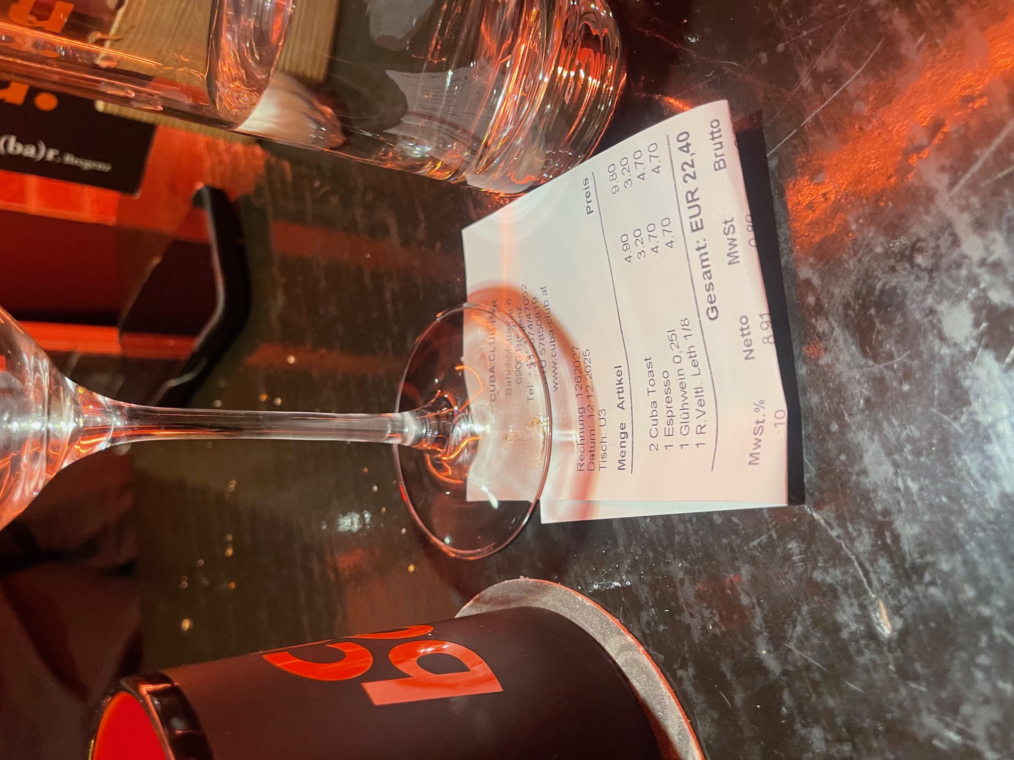 Mittagessen und Wein mit Freundin 54 Euro 22.11.25 Rioelvin