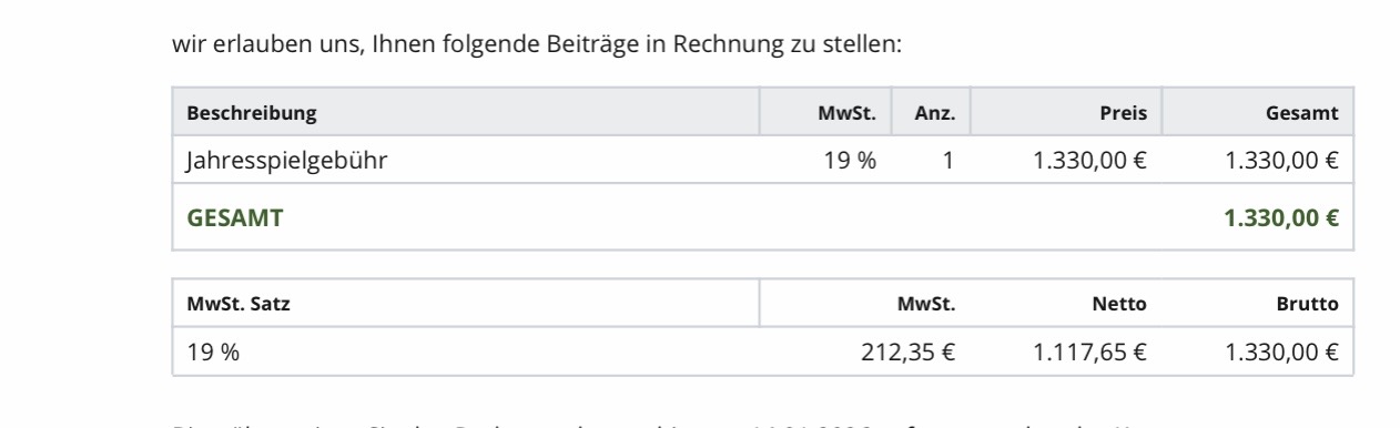 Jahresgebühr Golfplatz 3. Teil 110 Euro 15.04.26 Mariella