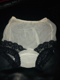 Absolute Rarität: Original Vintage-Slip, besteht zu 100% aus echtem, feinen Nylonstoff. Der saugeile Slip ist schwarz-weiß und hat Rüschen! Ein echter Fanartikel für Kenner echter Vintage Dessous! Natürlich Original von mir getragen. Ich trage in 1 Tag bevor ich in an dich verschicke!