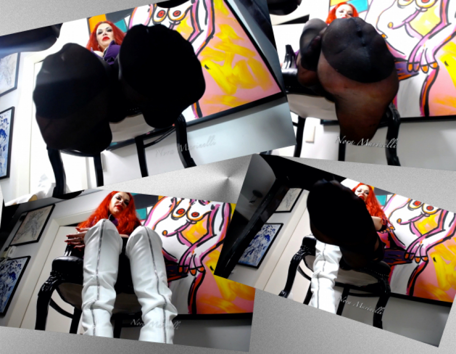 Knie nieder, wenn ich mir dem Finger schnippe, damit ich Dich als Fußhocker verwenden kann, um meine High Heels oder feuchten Nylonfüße auf Dir abzustellen.