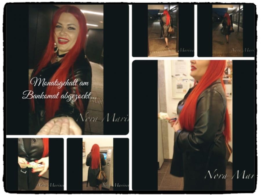 Wochenlang hat ein neuer Sklave im Chat gebettelt, damit er sich mit mir LIVE Treffen darf. Nachdem ich den dummen Loser soweit hatte, alles zu tun was ich wollte, stimmte ich einem 5-minütigen Treffen am Bankomat zu! Standesgemäß fuhr ich in meinem Porsche 911 Turbo bei der Bank vor. Der vor Ehrfurcht zitternde Trottel stand schon vor der Bank parat, seine mickrige Bankomatkarte – wie befohlen – in der Hand! Seine Bankomatkarte nahm ich Ihm umgehend aus seinen verschwitzten Händen....
