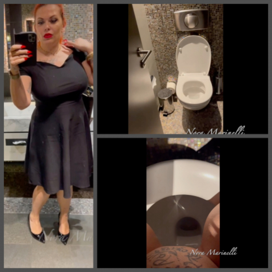Das ist ja wohl dein Job mich zu jedem Geschäftstermin – als mobile Toilette – zu begleiten! Krieche zu meinen aufgestöckelten Füßen auf allen vieren! Komme mit auf die Toilette und öffnen dein verkommenes Maul, damit ich mich darin auspissen kann! Für nichts anderes bist du gut, menschliches Pissoir! Ich liebe es, immer mein Mobiklo mitzuhaben, dass ist sehr praktisch und macht mich geil!
