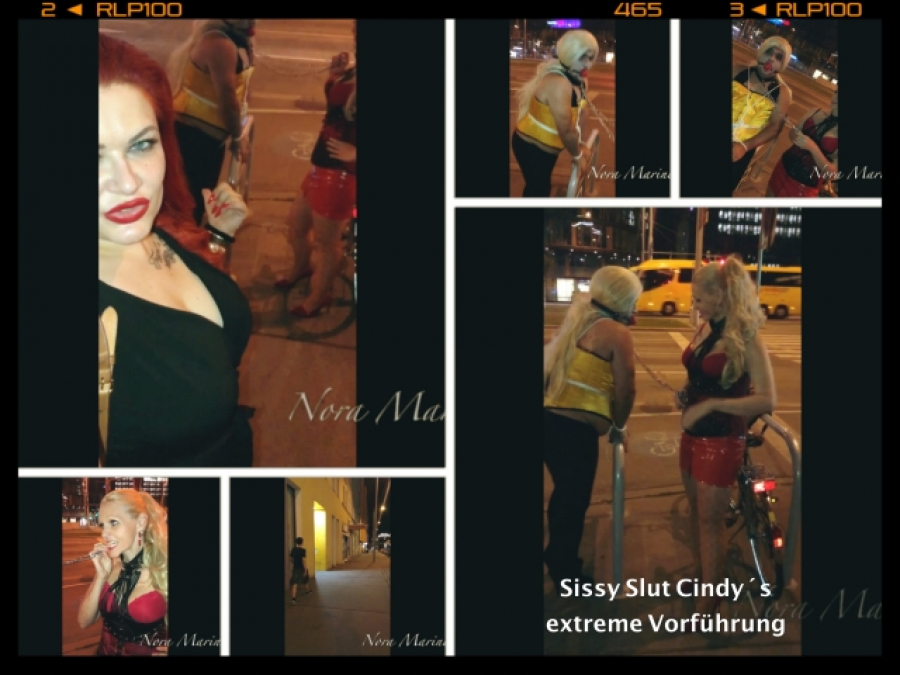 Slut Cindy Walk of Shame: Meine brasilianische Sissy Nutte Cindy wird extrem vorgeführt. Passanten, Radfahrer und Autofahrer können die kleine, geile Nutte begutachten und sie begaffen – eine echter „Walk of Shame“ eben! Cindy wird unter meine Anleitung von Lady Mercedes an der Leine, gefesselt und geknebelt ausgestellt und extrem geoutet.