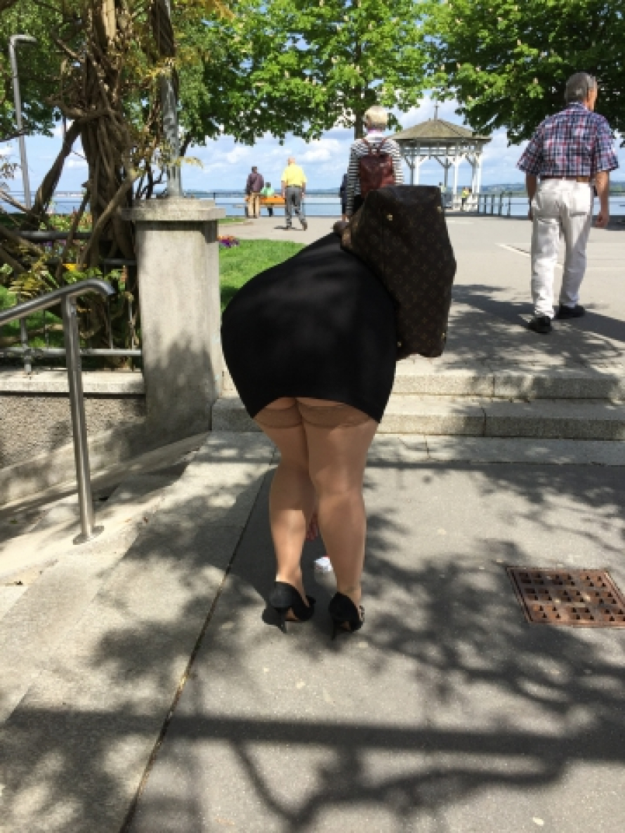 Heute habe ich mich in Bregenz an der Uferpromenade des Bodensee's entspannt. Nachdem ich einen Kaffee getrunken habe, bin ich in meinen hautfarbenen halterlosen Strümpfen, meinen 16 cm High Heels und einem sehr engen schwarzen, kurzen Kleid die Uferpromenade entlang gestöckelt. Irgendwie hatte ich das Gefühl, dass ich beobachtet werde. Als ich mich umgedreht habe, verfolgt mich doch tatsächlich so ein perverser Wichser. Dieses Voyeurschwein hat sich an mir aufgegeilt. Natürlich habe ich ihn zur Rede gestellt und bloßgestellt....