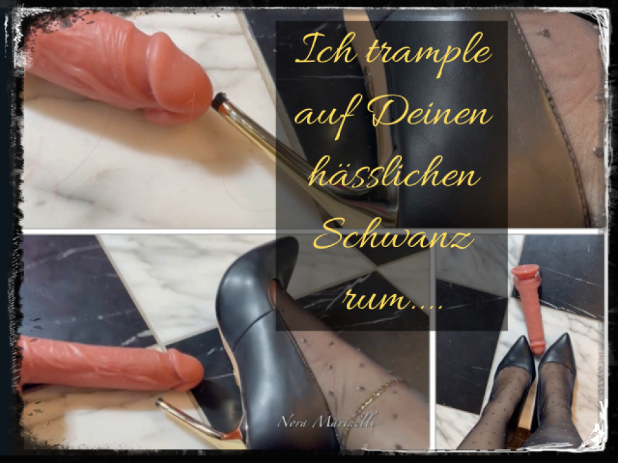 Wie jeder weiß, sind Sklavenschwänze nicht zum Ficken da! Hier zeige ich euch genau, was ich mit hässlichen Loserschwänzen anstelle! Ich trample mit meinen geilen Leder-Stiletto-Heels auf Deinem erbärmlichen Pimmel rum und amüsiere mich dabei köstlich! Ich liebe es Dir in die Eier zu treten, Deinen **** unter meinen Heels zu zerquetschen und Dir mit fiesem CBT deutlich zu zeigen, wo Dein Platz ist, Sklave!