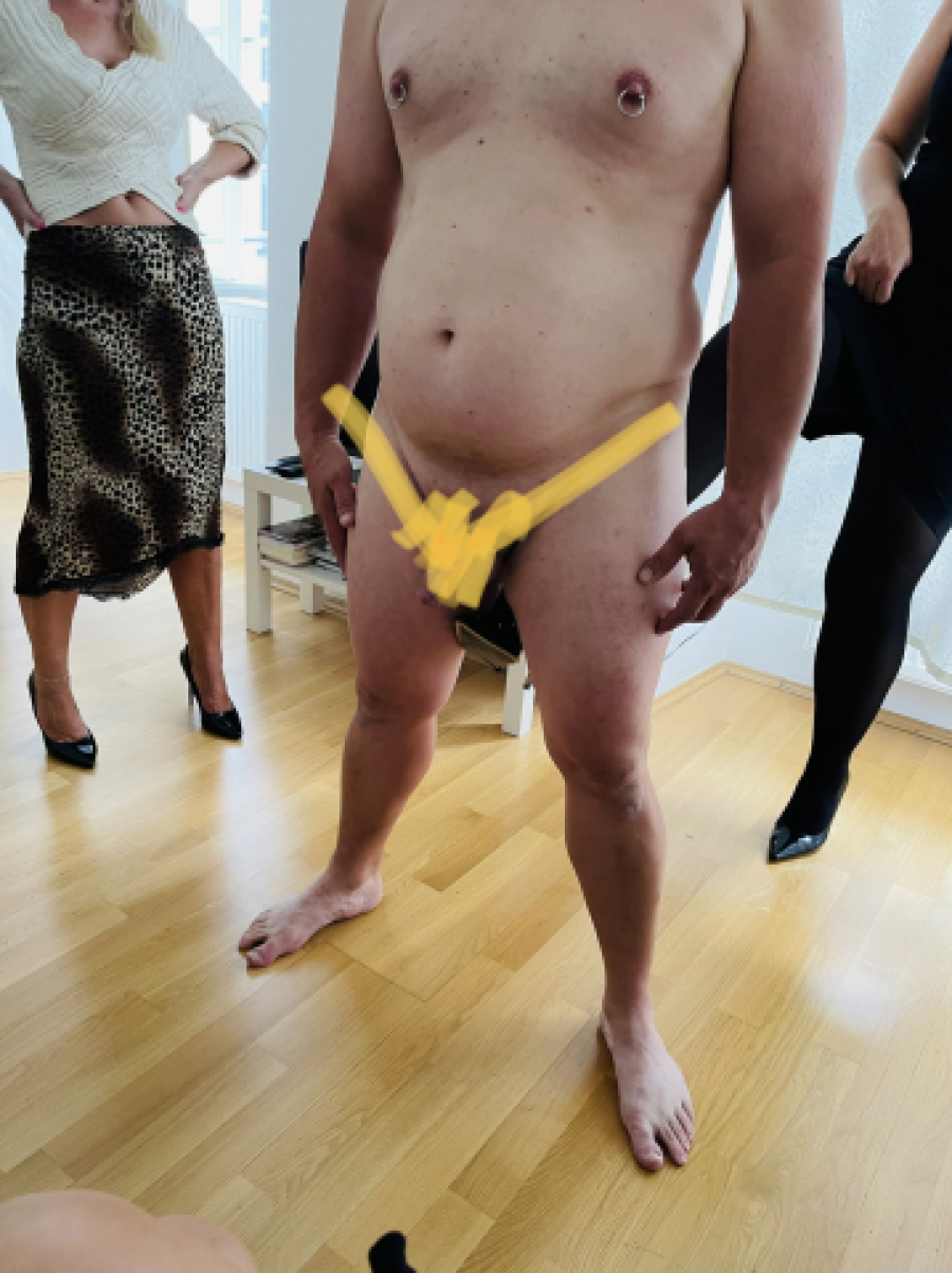 Eigentlich begutachteten wir den Sklaven zum reinen Privatvergnügen! Weil es aber so geil und unterhaltsam für uns Ladys war, habe ich mein IPhone gezuckt und die letzten paar Minuten seinen Sklaven-Eignungstestes mitgefilmt!